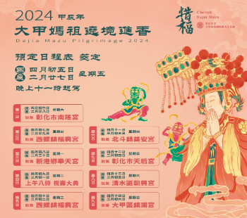 2024年「大甲媽祖遶境」進香活動將於2024年4月5日23點整準時起駕,前往新港奉天宮進香,預計於4月14日回鑾台中鎮瀾宮。