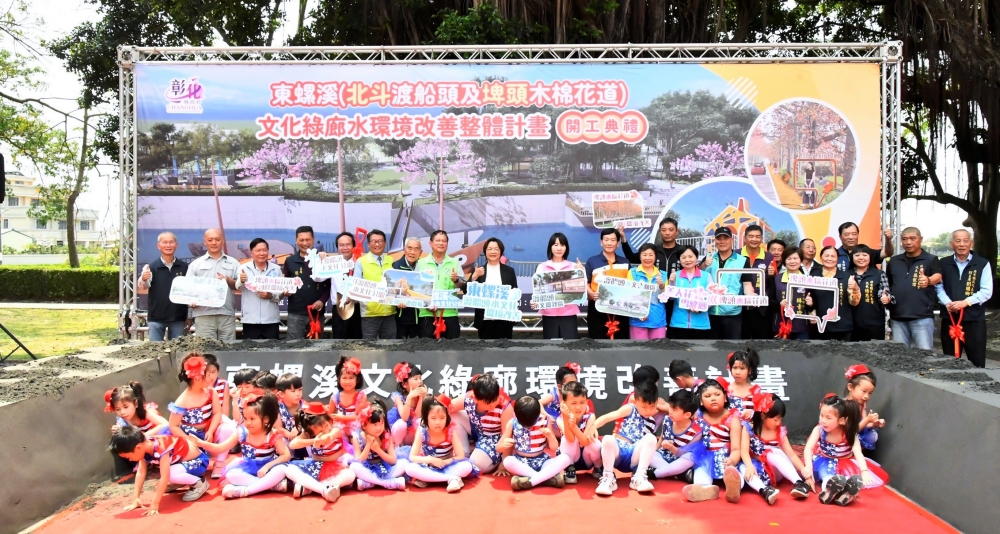 城觀處表示,東螺溪古稱「舊濁水溪」 ,全流域隸屬於彰化縣,流域流經彰化縣農業精華區,是農業、畜牧及養殖業發達地區,亦被稱為「彰化的母親河」;縣府團隊透過嚴謹的生態檢核,規劃水域及河岸兩側綠帶植被,營造生態友善空間,結合水岸河濱公園綠地、平台廣場等空間,打造東螺溪成為最優質的觀光休憩廊道。本案工程計畫的推動,感謝謝衣鳯立委協助爭取,經濟部水利署核定,以及彰化縣議會對預算的支持,該計畫內容包括兩大工區,第一工區-北斗渡船頭水文化綠廊環境營造,從台1線北斗橋到神農路七星橋計1.5公里、第二工區-埤頭木棉花道河畔環境改善,由新生路中溪橋往東改善約500公尺人行棧道及周邊增設入口意象。